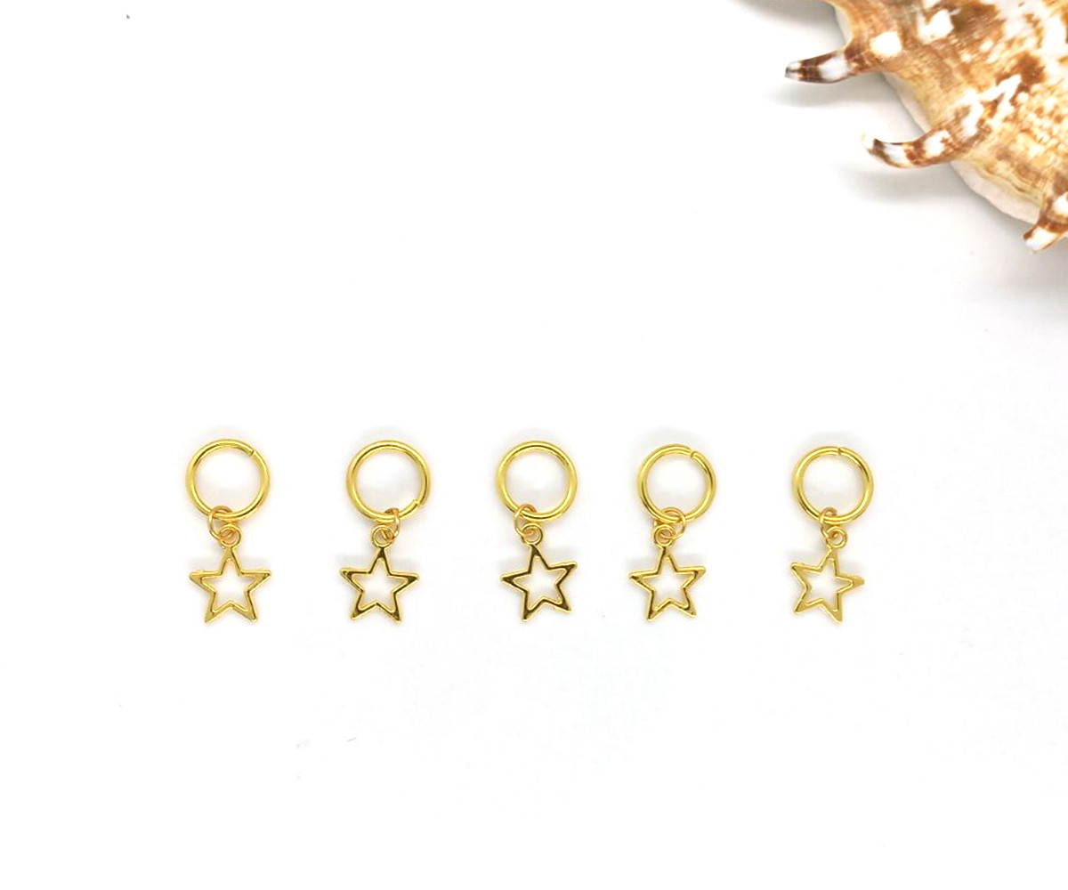 Пірсинг для волосся #124 контурні зірочки, набір (5 шт.). Набір складається з підвісок Зірочки. Розмір зірочок 14*12 мм.