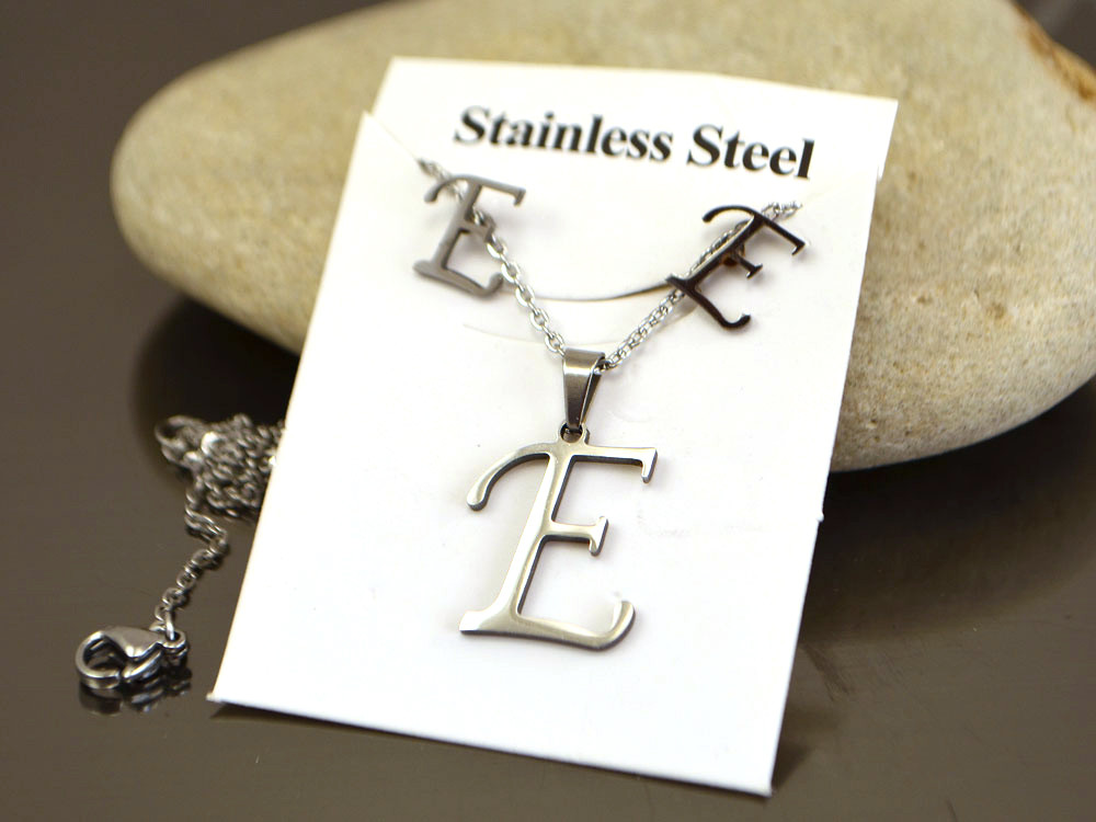 Комплект Буква E - сережки і кулон, хірургічна сталь