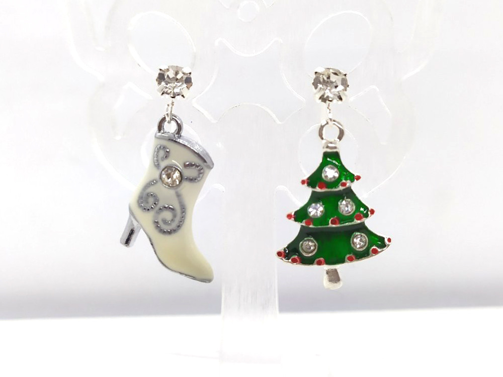 Сережки Новорічні #28 Емальові підвіски. Фурнітура — металевий сплав. Колір срібло. Ціна за 1 пару.